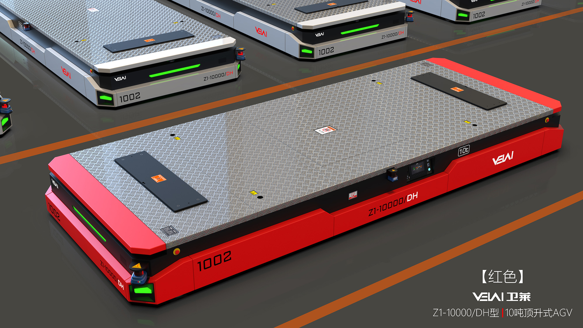 Z1-10t 型重載 AGV,可提供單車 10t 的負(fù)載能力,具有原地轉(zhuǎn)彎和橫移功能,特別適合用于大尺寸、大噸位工 件的運(yùn)輸??稍跒r青、自流平、混凝土地面上運(yùn)行,具有很強(qiáng)的地面條件適應(yīng)能力。由于其自身具有整車自頂升 功能,除可用于直接承載工件外,還可通過(guò)鉆入工件架并進(jìn)行自頂升,托舉工件架后間接承載工件。根據(jù)用戶要 求,多 AGV 可實(shí)現(xiàn)同步聯(lián)動(dòng),用于托舉大型部件。采用 PGV+ 二維碼的復(fù)合導(dǎo)航模式全自動(dòng)運(yùn)行,也可以遙控 運(yùn)行。