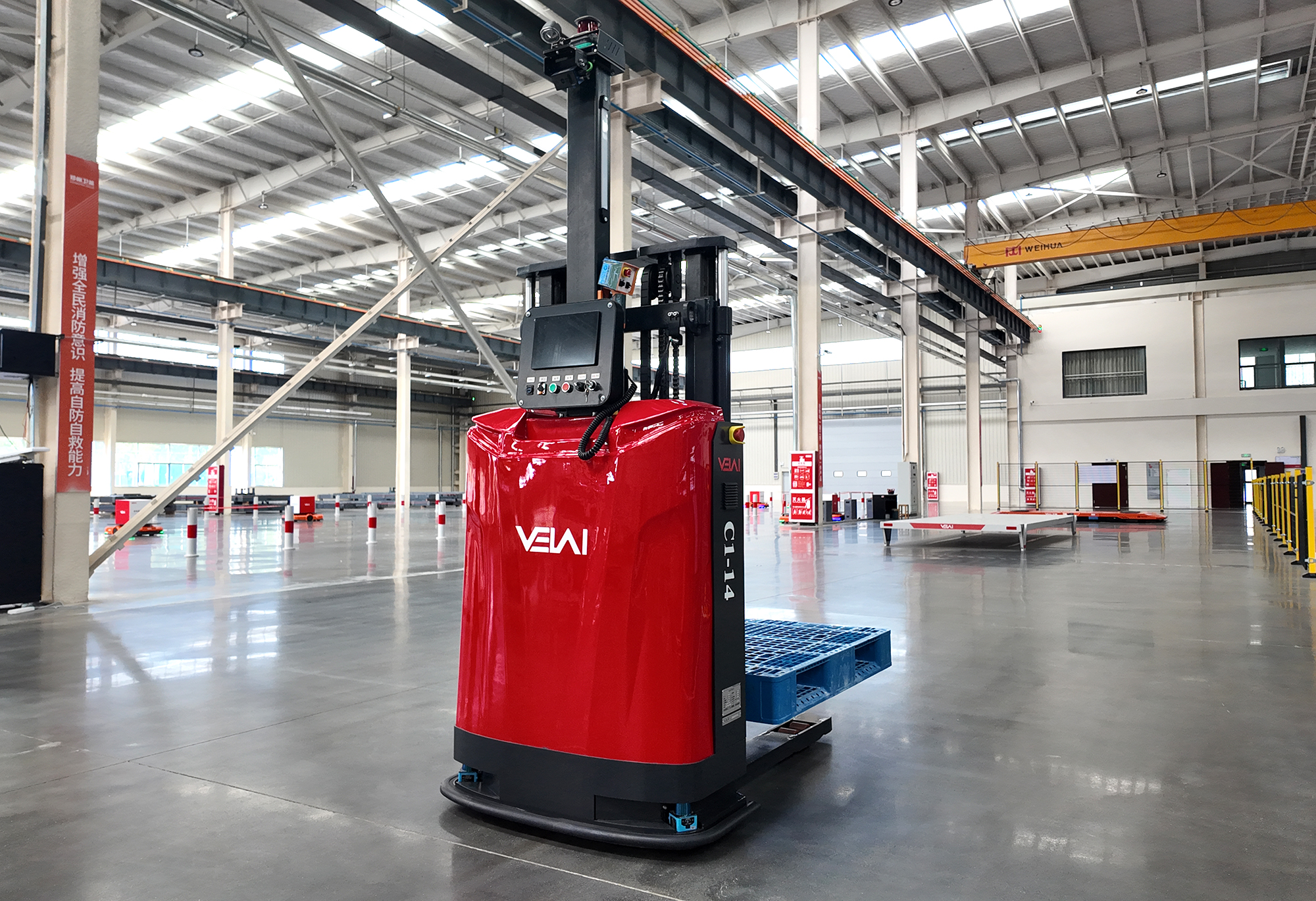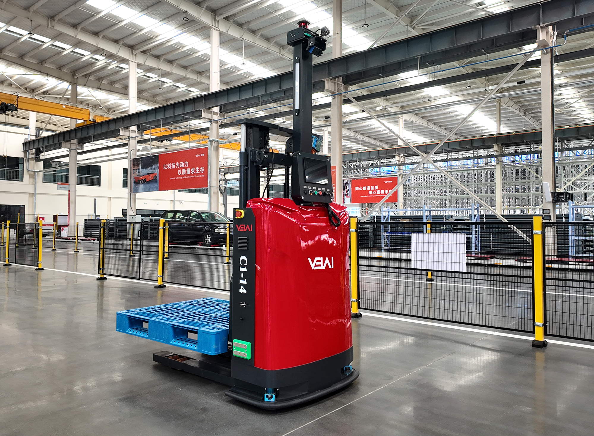 堆垛叉車式AGV 是自動(dòng)化倉(cāng)儲(chǔ)系統(tǒng)中主要存取設(shè)備,根據(jù)計(jì)算機(jī)指令在立體貨架之間的巷道中行走,用貨叉把貨格上的貨物取出或存入。升降系統(tǒng)門架選用高強(qiáng)度合金鋼焊接一體加工,精度高、剛性好,用電缸作為頂升動(dòng)力,維護(hù)保養(yǎng)簡(jiǎn)單,無(wú)漏油風(fēng)險(xiǎn),可以維持使用環(huán)境的清潔。整機(jī)重量輕、速度快、結(jié)構(gòu)簡(jiǎn)潔、轉(zhuǎn)彎半徑小。采用激光SLAM 導(dǎo)航,應(yīng)用靈活,路徑可實(shí)時(shí)規(guī)劃調(diào)整,適應(yīng)柔性生產(chǎn)場(chǎng)景。調(diào)度算法優(yōu)秀,性能穩(wěn)定可靠、功能完善。